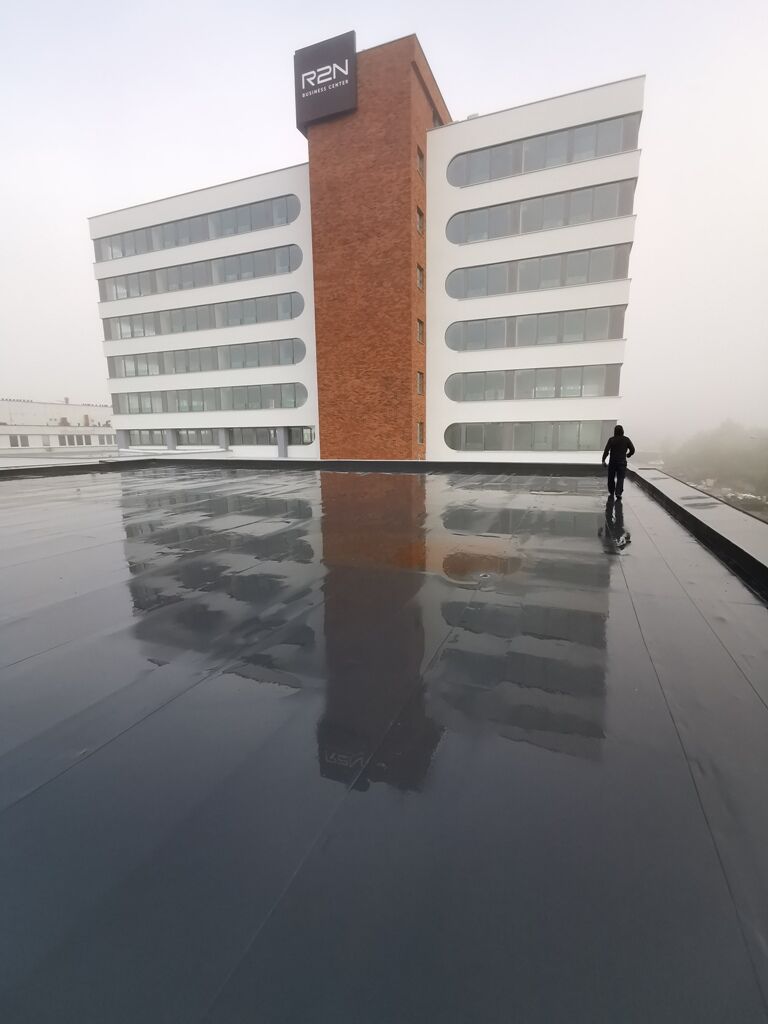 jednej zo striech bola použitá PVC fólia vo farebnom prevedení Antracit.