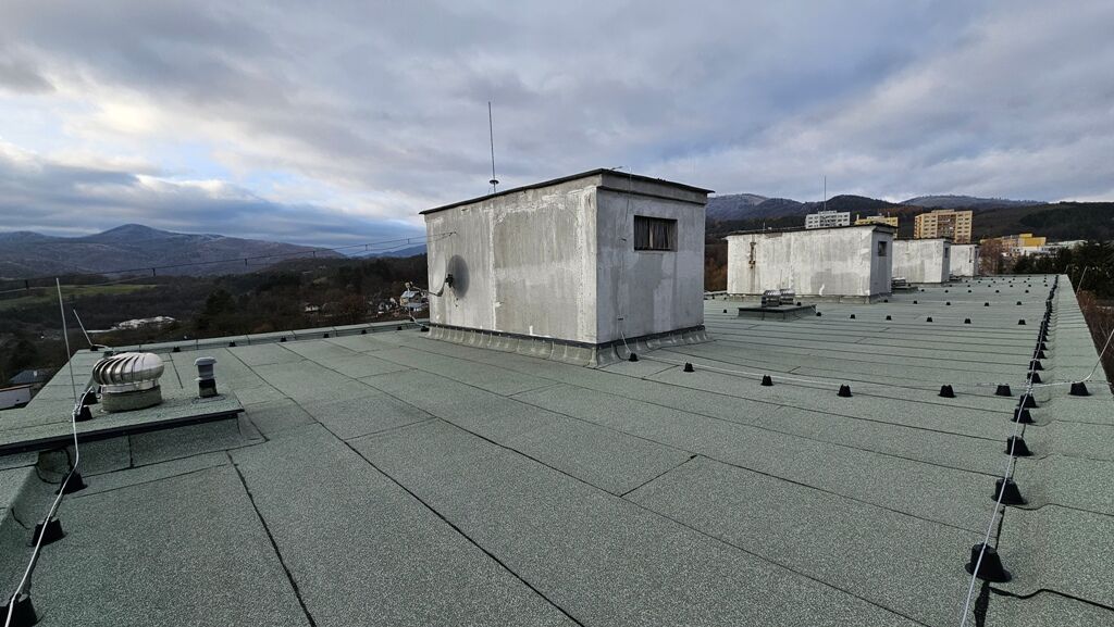 Na streche sa realizovalo zhotovenie zateplenia a novej hydroizolačnej vrstvy.