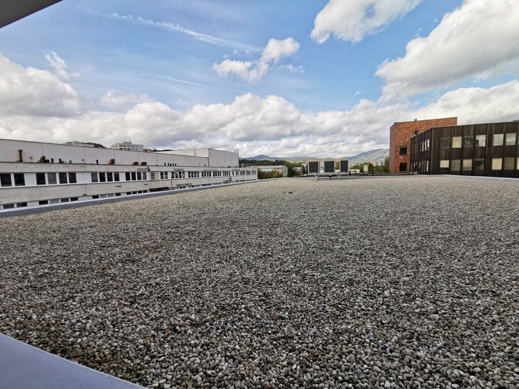 jednej zo striech bola použitá PVC fólia vo farebnom prevedení Antracit.