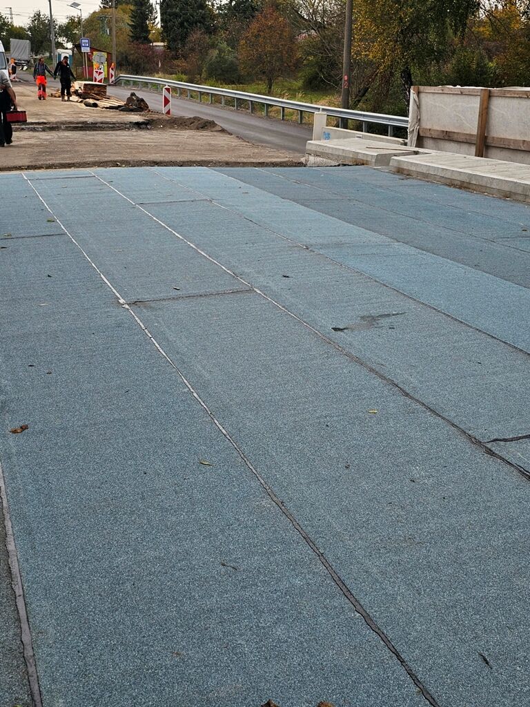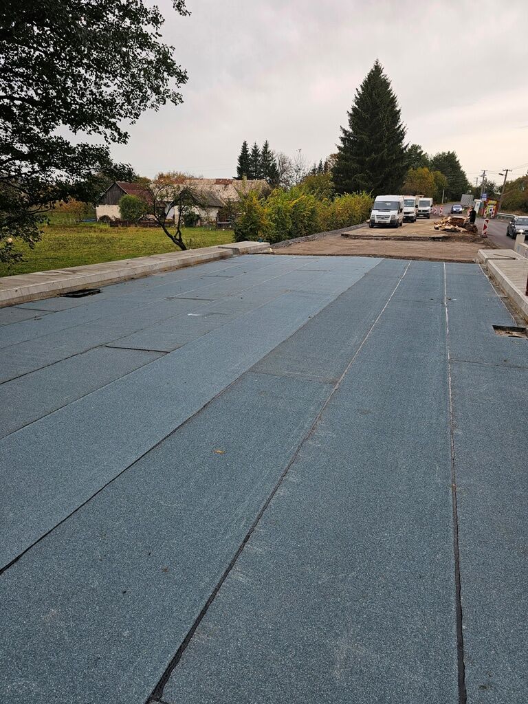 postavený most v Pliešovciach. Hydroizolácia sa celoplošne natavovala na